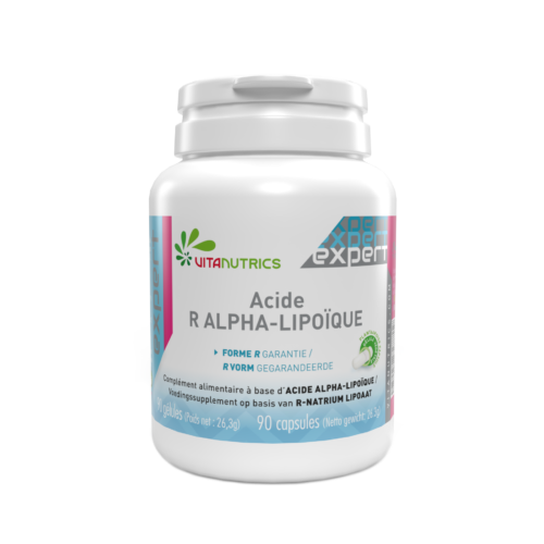 - De l’Acide Alpha-Lipoïque sous sa forme R uniquement (la seule forme assimilable par l’organisme) pour une efficacité maximale.