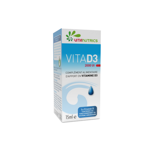 Notre vitamine D3 se compose d’ingrédients 100% d’origine naturelle. Elle est concentrée à 2000 UI par goutte (soit 1000% de l’apport nutritionnel requis) et se présente sous une forme huileuse (liposomale) et est diluée avec de l’huile de colza bio naturelle. L’utilisation d’une forme huileuse permet une meilleure assimilation par l’organisme. Notre gamme VITAD3 se présente sous différents dosages : elle conviendra donc à toute la famille. Le bouchon doseur délivre goutte par goutte et permet de faciliter la prise de la vitamine.